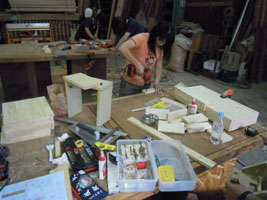 電動工具、手工具、木材など木工作業に必要な機材を準備しました。