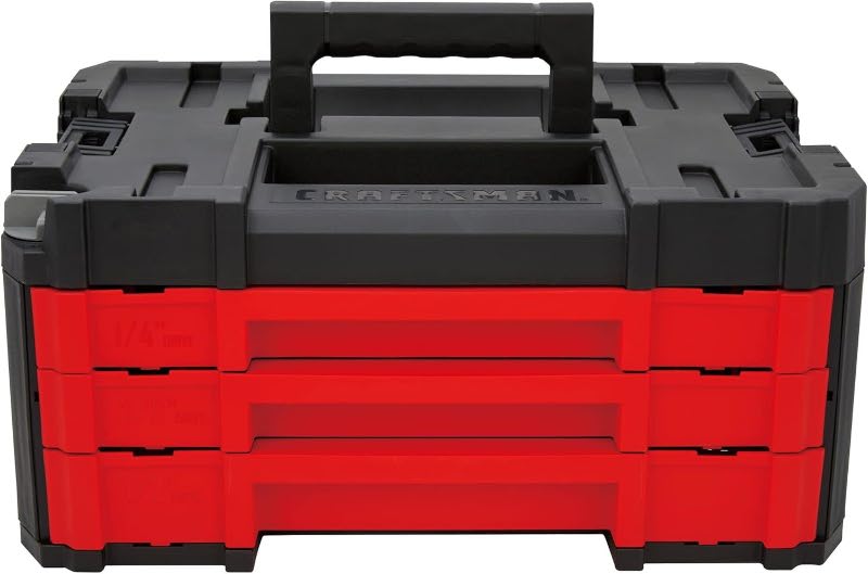 Versastack 3段引き出し式メカニックツール262点セット(CMMT45307)は、その他のVersastack コンポーネントと完全に互換性があり、その他のVersastack コンポーネントの上下に積み重ねて使用することもできます。Craftsman Versastackシステムは、ユーザーのニーズに合わせて様々な収納ソリューションの組み合わせが可能な柔軟なプラットフォームです。簡単に使用できる引き出しロックダイヤルを備え、不使用時に引き出しを所定の位置にロックでき、中身が落ちるのを防ぎます。引き出しは片手で開けられ、ボックス上に積み重ねることで簡単にアクセスしたり、一時的に収納することもできます。あらゆる作業に取り組めるよう作られたこのセットは、 262点のメカニックツールが詰め込まれています。準プロ、自動車愛好家、DIY 愛好家にとって完璧なアソートメントになります。仕事に適したツールと、ツールを整理収納するための適切な収納ソリューションを組み合わせることに勝るものはありません。
