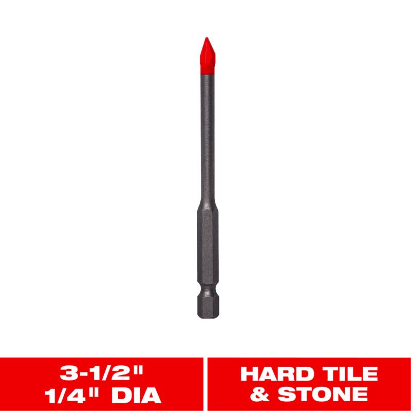 Diabloの次世代硬質タイル&石材用カーバイドチップドリルビットシリーズは、より速いスタートを提供し、標準ガラス&タイル用ドリルビットと比較してタイル、石材、ガラス用途において最大10倍長い製品寿命を実現します。独自のろう付け/硬化処理により最適化された超硬チップは、製品寿命と生産性を向上させ、ユーザーが素早く正確に穴を開けられます。マルチグラインドカーバイドグリップポイントチップ設計により、硬質素材の穴開けにおいて、力強いスタートときれいな穴開けを実現します。六角シャンクはドリルチャックでの回転を排除することで安定感が向上します。