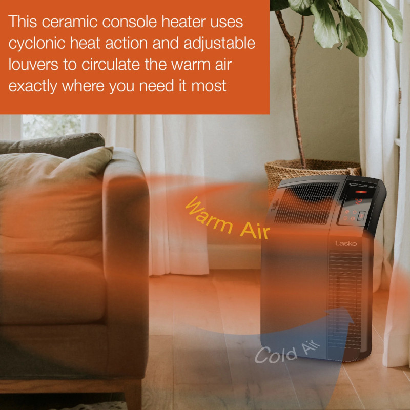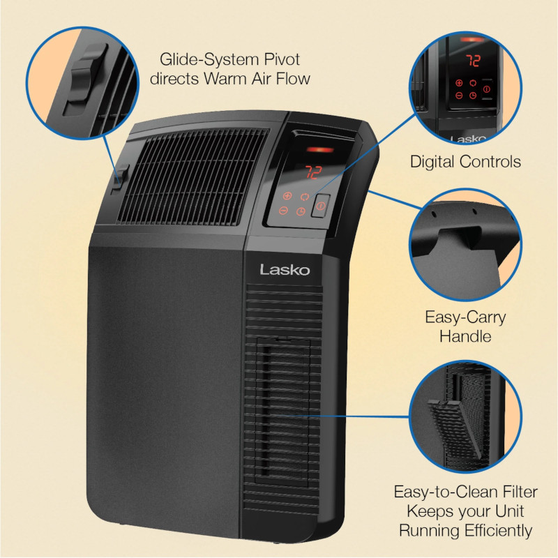 Lasko サイクロン式デジタルセラミックヒーターは、サイクロン熱作用で部屋全体に心地よい暖かさを提供します。暖かな空気を座った際の高さの最も必要な場所へ正確に循環させます。簡単なタッチセンサーコントロールでサーモスタット調節、自動電源オフタイマーモード設定、そして2種の静音設定から選択できます。さらに、スペースヒーターは壁際に安全に設置でき、人の出入りが多い部屋でも邪魔にならないよう設計されています。お手入れ簡単なフィルターは、スペースヒーターを効率的に稼働してくれます。自動過熱保護や熱くならない外装などの安全機能を搭載しています。気候が寒くなってきたら、Lasko ヒーターを使用して自分のいる部屋だけを暖かくして、全体の暖房費用を節約しましょう。完全組立済みです。屋内でのみ使用できます。