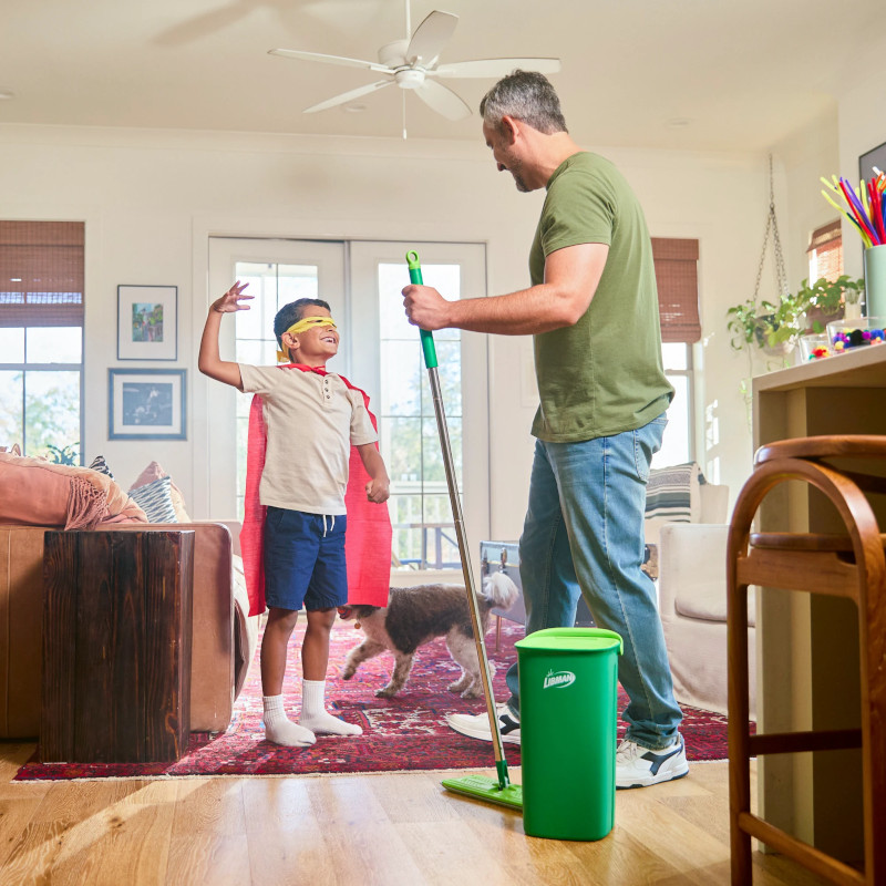 掃除用品のリストに、この万能モップを加えましょう。家庭掃除用に最適な製品の1つであるオールインワン式クリーニングツールは、濡れた、または乾いた全ての硬質面に使用でき、ベースボードクリーナー、壁用クリーナーなど、様々な用途で使用できます。モップバケツは、デュアルチャンバーシステムを備え、モップヘッドから水と汚れを効率的に除去できます。硬質木材、ビニール、ラミネート、タイル、リノリウムなど、全ての硬質面に安全に使用でき、大きな汚れにも対応できる十分な耐久性を備えています。Libman Rinse ‘n Wring マイクロファイバーパッドは、洗濯機洗浄対応で、システムには追加のマイクロファイバー ヘッドが1つ (合計パッド2個入) 付属しています。