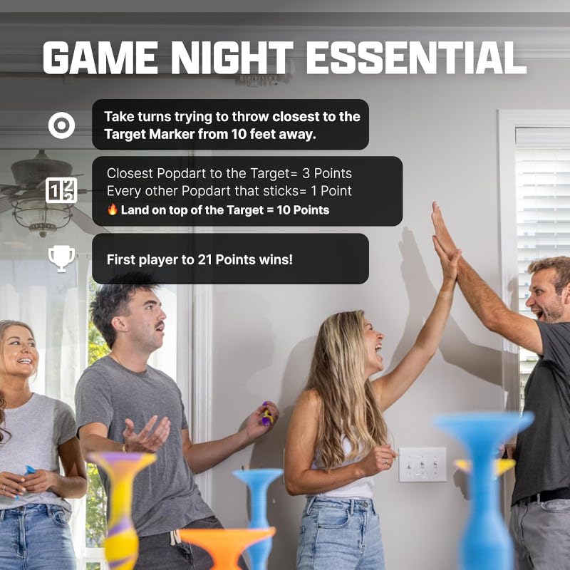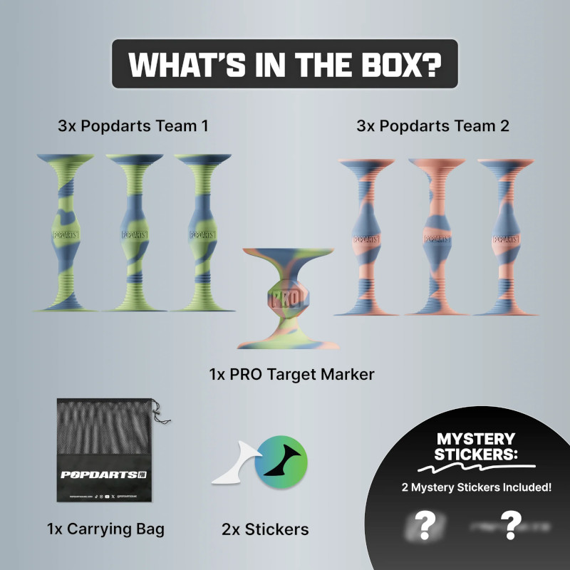 Popdarts PROパックは、あなたのゲームを次のレベルに引き上げるためにここにあります。友達と対戦したり、トリックショットを完璧にマスターしたり、ゲームナイトにエネルギーを注ぎ込んだり、このパックは究極の楽しさのために作られています。もしあなたがトップに着地するスキルを持っているなら、PRO ターゲットマーカーについて話しましょう、10ポイント獲得できます。挑戦する気はありますか。