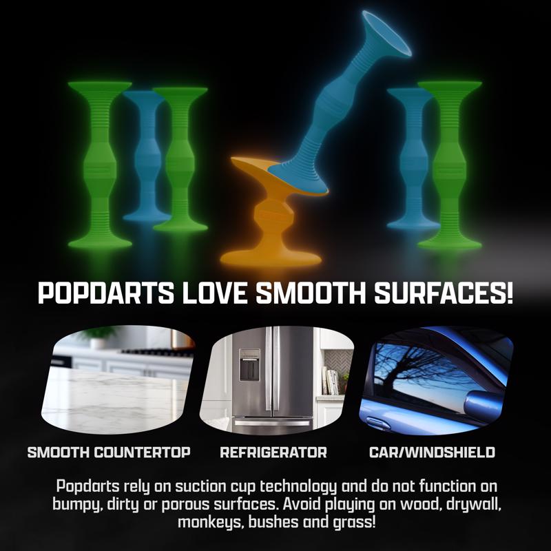 ・付属内容: (3) 1色のPopdarts (プレイヤー1)、(3)別色のPopdarts (プレイヤー 2)、(1) プロ用ターゲットマーカー、(1) キャリーバッグ(1 mmごとが重要なので、ルールと定規を搭載)、(2) 誰もがあなたがPopdarts ファミリーの一員であることが確認できるステッカー