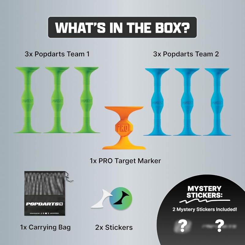 Popdarts PROパックは、あなたのゲームを次のレベルに引き上げるためにここにあります。友達と対戦したり、トリックショットを完璧にマスターしたり、ゲームナイトにエネルギーを注ぎ込んだり、このパックは究極の楽しさのために作られています。もしあなたがトップに着地するスキルを持っているなら、PRO ターゲットマーカーについて話しましょう、10ポイント獲得できます。挑戦する気はありますか。
