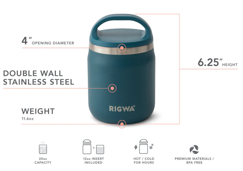 この洗練されたフードジャーは、20oz(約600 ml)を保持でき、漏れを防ぐねじ込み式蓋と持ち運びに便利なハンドルを備えています。ポッドにはオプションで使用できる容量12oz(約360 ml)のインサートが付属しています。二重壁ステンレススティールを備え、真空断熱構造により、食物を何時間も温かく/冷たく保ち、上部には漏れを防ぐねじり込み式蓋が付属しています。