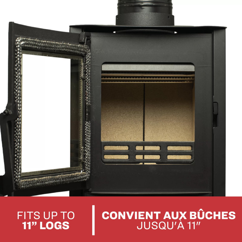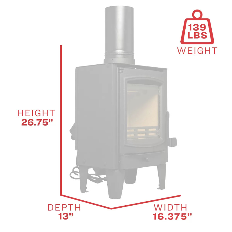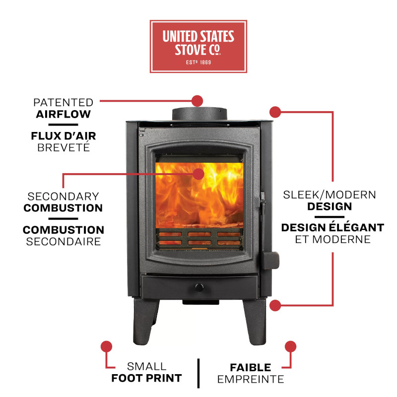 US Stove TH-100 は、他に類を見ない空間を節約できる薪ストーブで、最大 750 sqft.(約67.5 平方m)まで効率的に暖めます。TH-100 は小規模住宅やゾーンの暖房に最適で、最大8時間燃焼します。暖炉庫内には最大11 in. サイズの薪が入れられ、最大出力26,000 BTUを実現します。モダンスタイルと素晴らしい熱出力、そして利便性を兼ね備え、小規模な暖房ニーズにとって素晴らしいソリューションを提供します。 TH-100 暖炉は75%を超える効率性を提供します。
