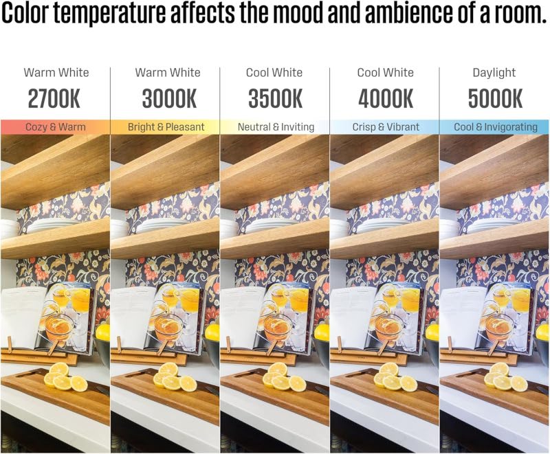 ・色温度選択:スペースに最適な色温度2700k、3000k、3500k、4000k、5000k)を選択することによって照明の雰囲気をカスタマイズできます