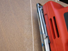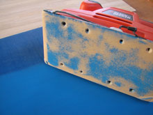 材料の端の方をサンディングする場合には、角を丸くしない様、パッドの2/3が材料に載っている様に作業しましょう。 |