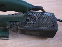 グリップを両手で軽く握り、ゆっくり一定の速さで前後に動かします、その時押し付けることはぜず、本体の重量を利用しパット全体が材料に当たる様に気を付けましょう。